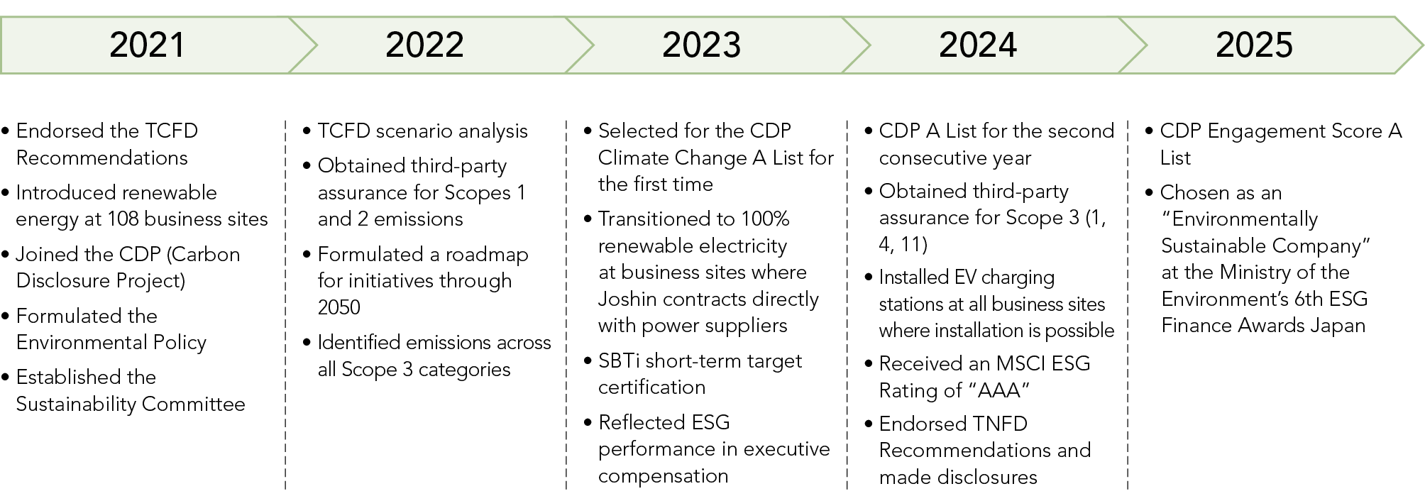Upon receiving the Sustainability Committee’s reports, the Board of Executive Officers deliberates on the Joshin Group’s environmental response and all other sustainability matters. This is all supervised by the Board of Directors. Furthermore, the Risk Management Committee examines and manages key risks identified within the Group.
