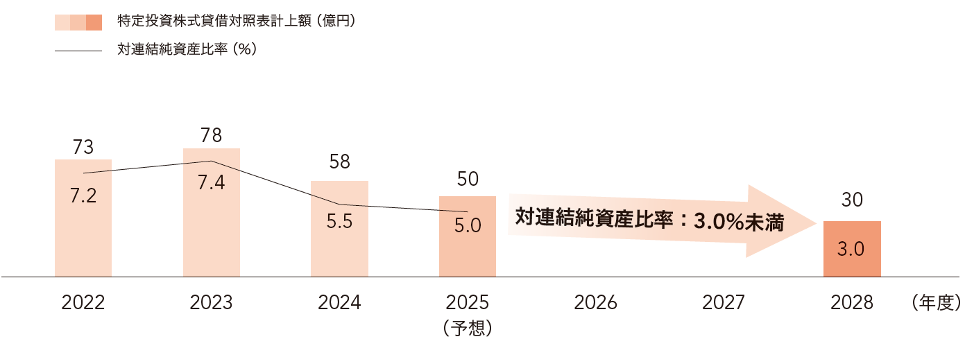 (今後の政策保有株削減の方向性=2028年度純資産割合3.0%未満を目指す)